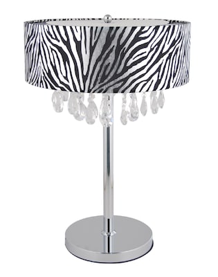Elegant Designs Trendy Crystal Table Lamp With Zebra Print Drum Shade Chrome Finish Quill Com
